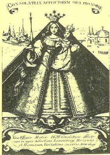 In de kaarsenkapel omringen veel statige kaarsen “De Troosteres der Bedroefden”