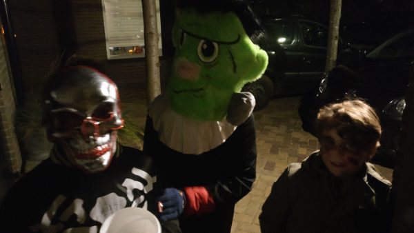 Ja je schrikt je dood als er wordt gebeld en je de deur opendoet. Wat een griezels staan er ineens voor je. Oh jaĀ Halloween.
