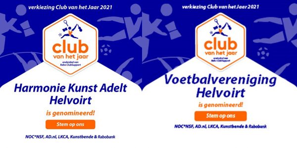 HELVOIRT – 13 mei 2021. Zowel VV Helvoirt als Harmonie Kunst Adelt dingen mee naar de titel Club van het Jaar 2021.