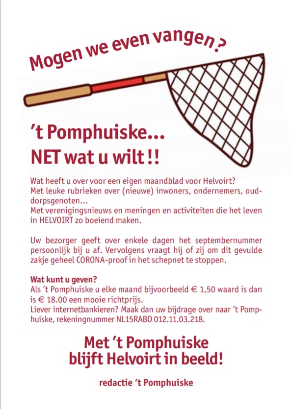 HELVOIRT – 14 september 2020. Collecteren is lastig in tijden van corona. De redactie van ons lokale maandblad heeft daar wat op gevonden.