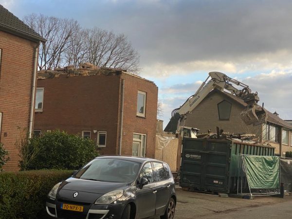 Vandaag is de sloop begonnen, als de woningen gesloopt zijn, wordt het terrein afgezet met bouwhekken.
